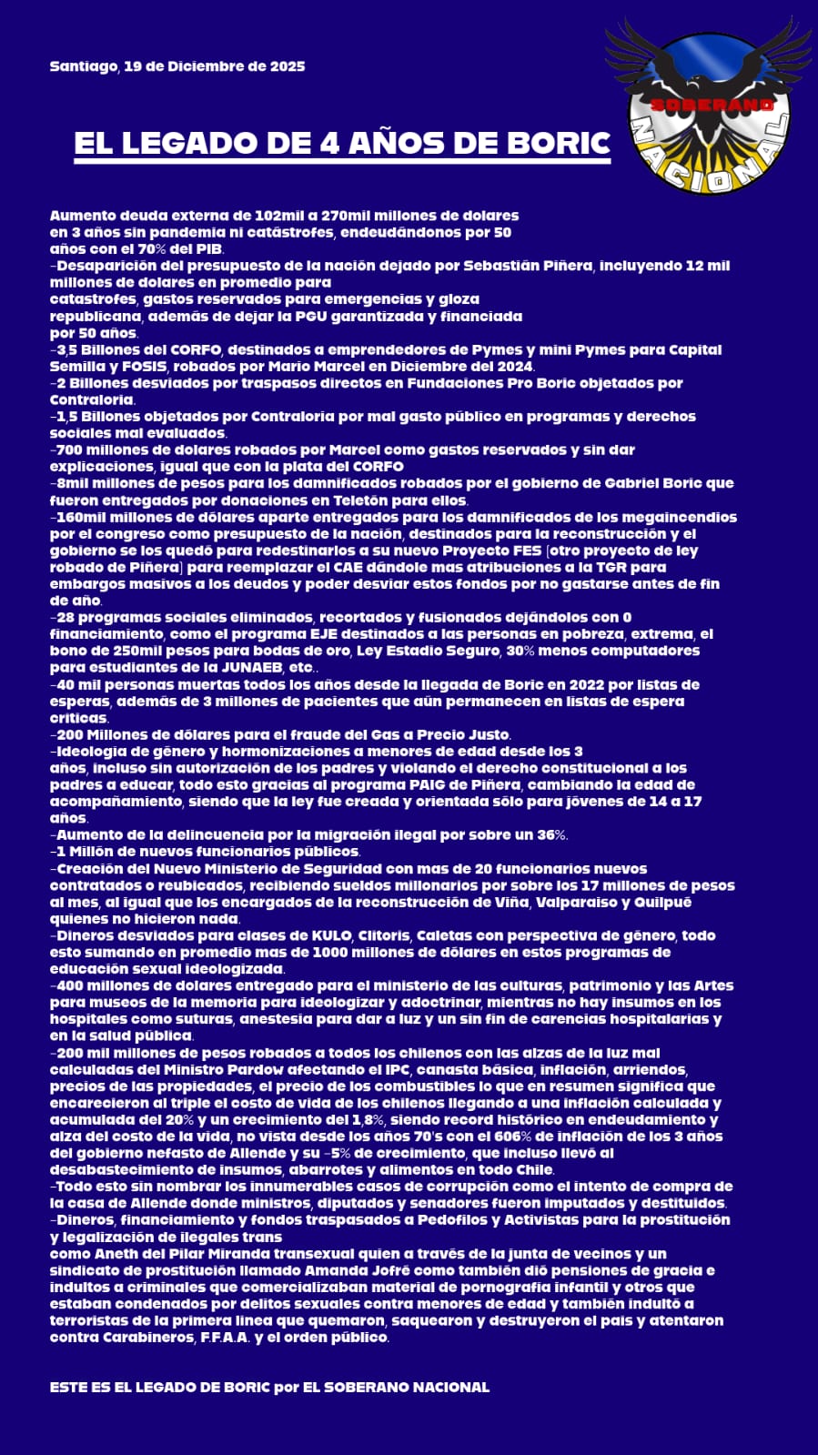Diciembre 10, 2025Escribe: Hermógenes Pérez de Arce No somos un país, somos un chiste. El debate público es lamentable. Estamos gobernados por un subnormal. Su última medida anunciada es procurar impedir el indulto de personas ilegalmente presas por un delito que no pudieron cometer. Esto no lo sabe la gran mayoría, porque los medios no lo informan. […]