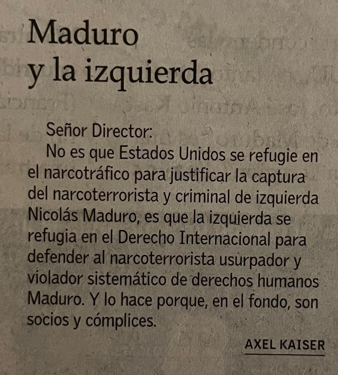 Enero 7, 2026Carta de Cristián Warnken a los líderes de izquierda latinoamericanos 03 DE ENERO 2026 El dictador implacable y siniestro que ha provocado innecesariamente el sufrimiento del pueblo venezolano, condenando a la diáspora por el mundo a millones de tus hijos, a la tortura y prisión a miles, el presidente ilegítimo de Venezuela, que se robó […]