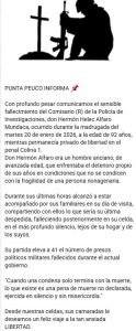La muerte del  Comisario Hermón Alfaro M., de 92 años, ocurrida en silencio dentro de su celda en Colina 1, es una señal brutal de lo que está pasando con los condenados por DD.HH, la mayoría condenados al margen de las leyes vigentes
