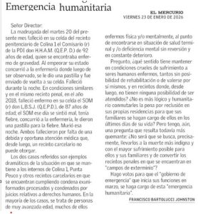 Chile vive uno de esos momentos. El problema es concreto y verificable: personas privadas de libertad que superan ampliamente los 75, 80 e incluso 85 años de edad, muchas de ellas con enfermedades graves, deterioro cognitivo, dependencia funcional o condiciones terminales, continúan cumpliendo penas de prisión efectiva sin que exista hoy una finalidad penal jurídicamente reconocible. No se trata de una discusión ideológica ni de una disputa histórica. Se trata de personas específicas respecto de las cuales la privación de libertad ha perdido racionalidad penal en el presente.