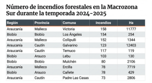 El cruce de información de la Multigremial de La Araucanía con los datos de incendios forestales de la temporada 2024-2025 y los hechos de violencia rural acumulados en los últimos cinco años, revela una coincidencia significativa: la mitad de las 10 comunas con más siniestros durante la última temporada concentra también un mayor número de hechos violentos. Se trata de Victoria, Cañete, Collipulli, Ercilla y Padre Las Casas. Para la agrupación, “en determinadas zonas los incendios forestales intencionales forman parte integral del fenómeno de violencia rural. Desconocer esta relación implica subestimar el carácter delictual y estratégico del uso del fuego en el conflicto y conduce a diagnósticos incompletos que dificultan una respuesta adecuada desde el Estado”.